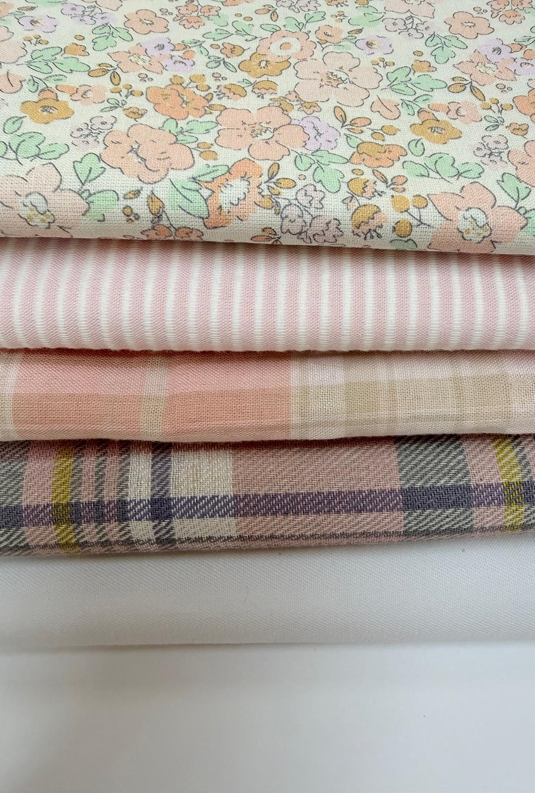 🌿 Variedad de tejidos (popelín, doble gasa, batista, viyela, seersucker, vichy Algodón, waffle, lonetas, sarga, piqué..)