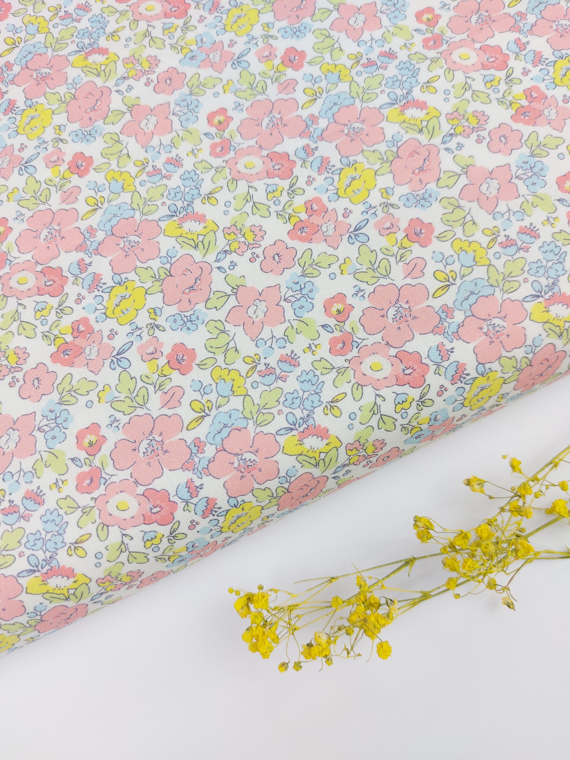 Un popelín delicado y luminoso que evoca un jardín en plena primavera, donde las flores parecen bailar suavemente con la brisa 🌼✨. Su fondo en blanco aporta luz y elegancia, permitiendo que el estampado floral destaque con una armonía exquisita.