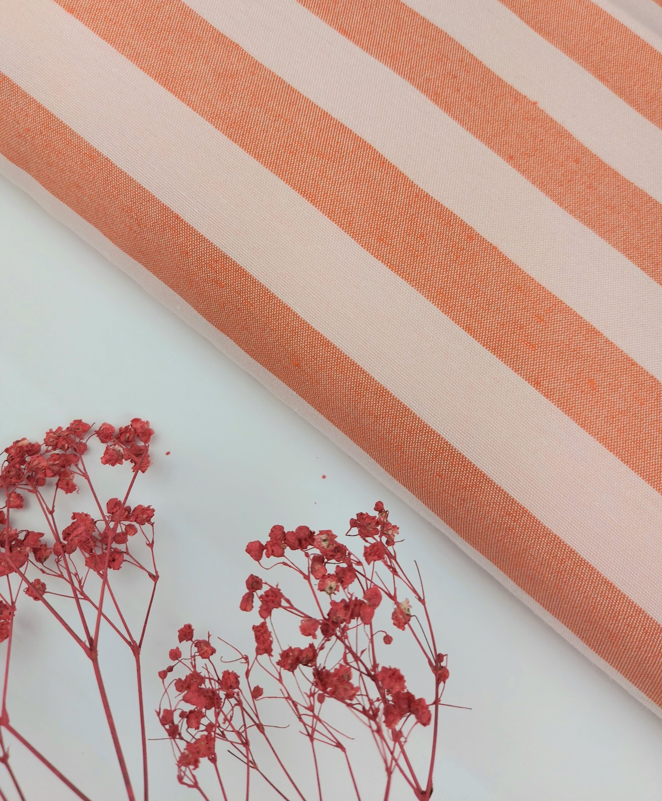 Popelín&Poliéster Rayas Naranja&Rosa